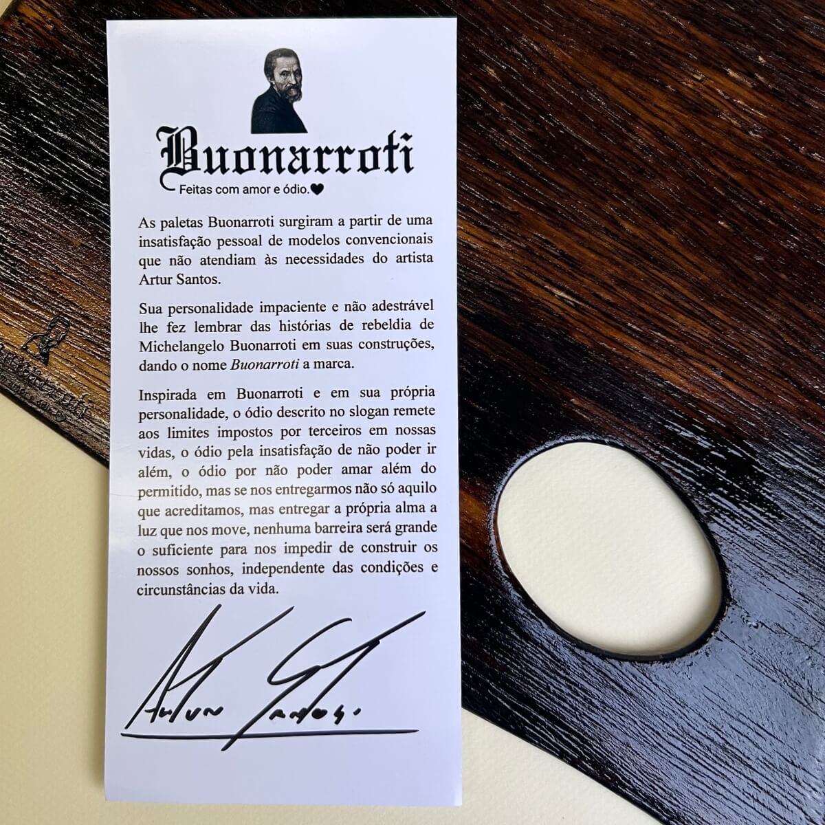 As paletas Buonarroti surgiram a partir de uma insatisfação pessoal de modelos convencionais que não atendiam às necessidades do artista